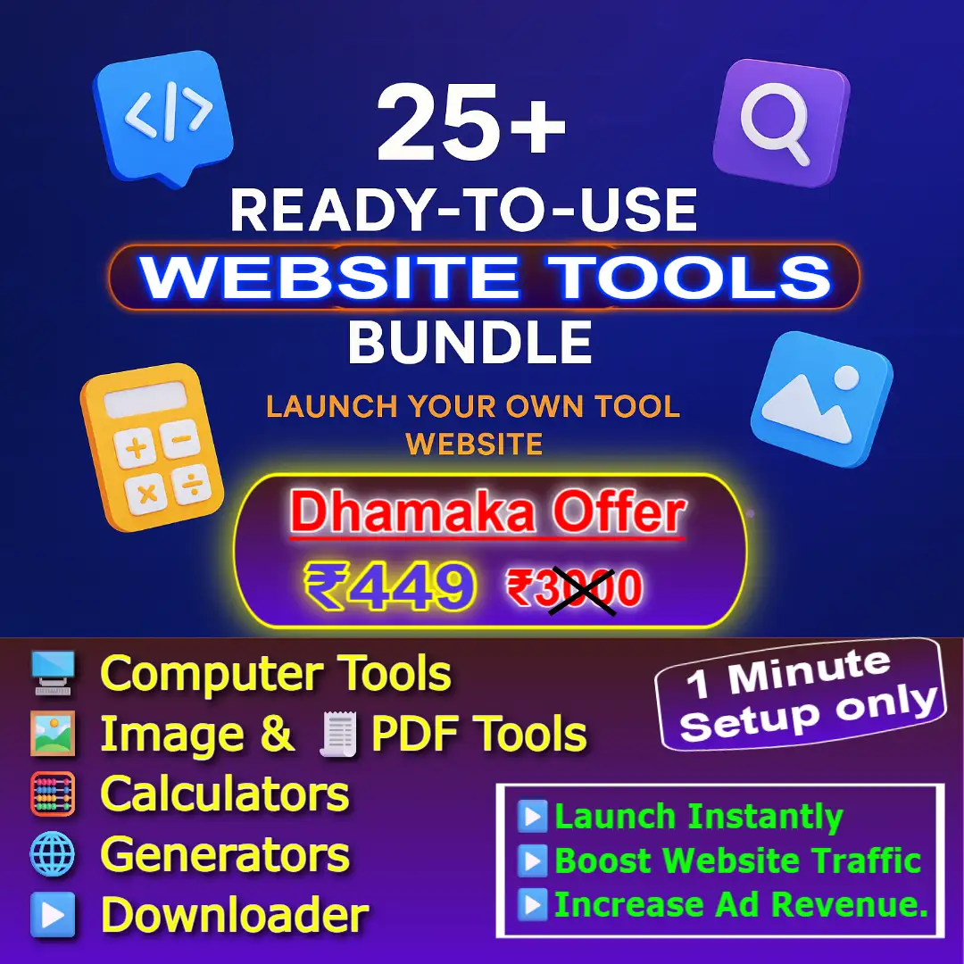 Grab this 25 Tools Website Bundle for just ₹499 (Regular Price ₹3000).